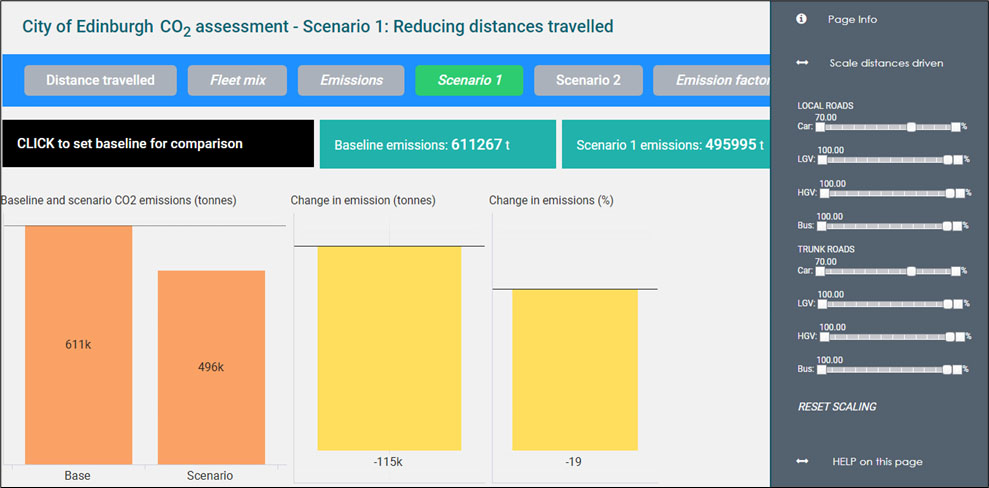 Diagram showing the City of Edinburgh CO2 assessment – Scenario 1: Reducing distances travelled