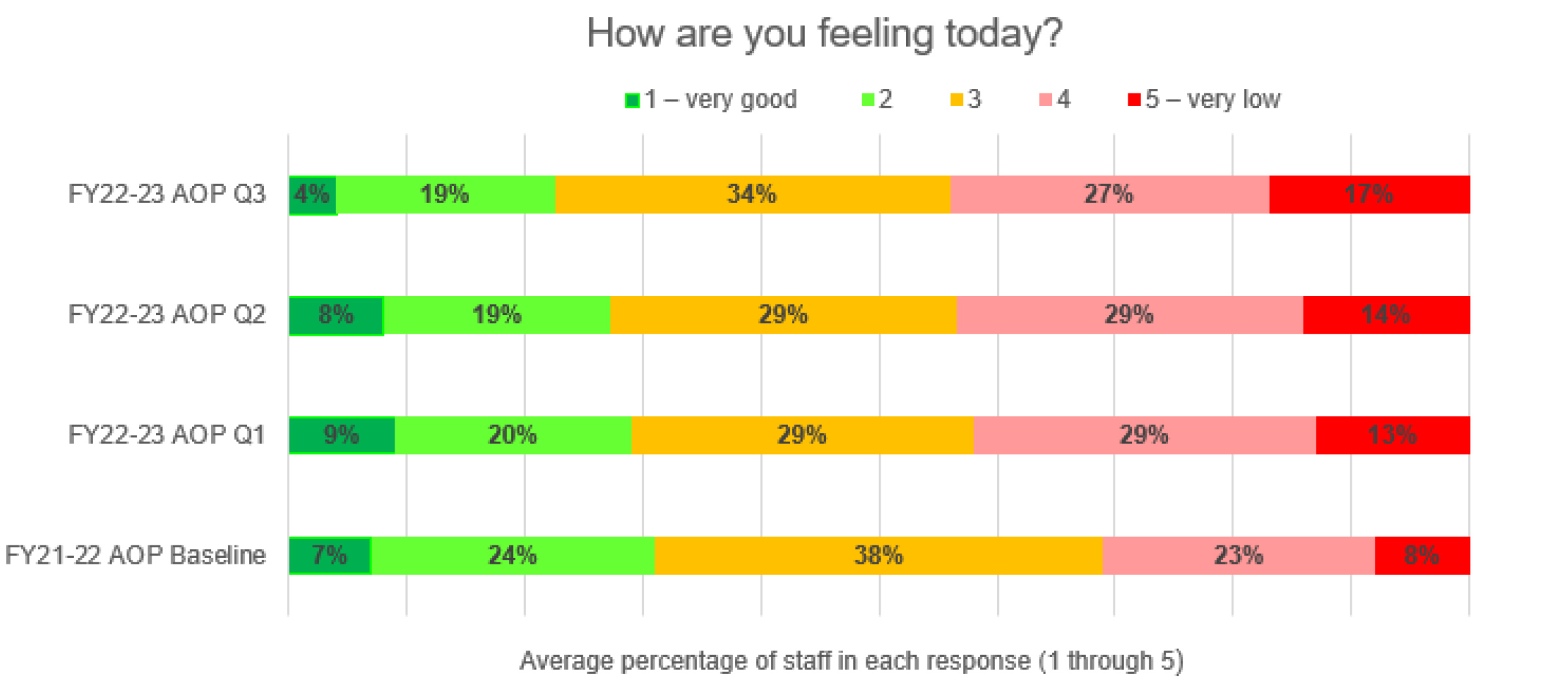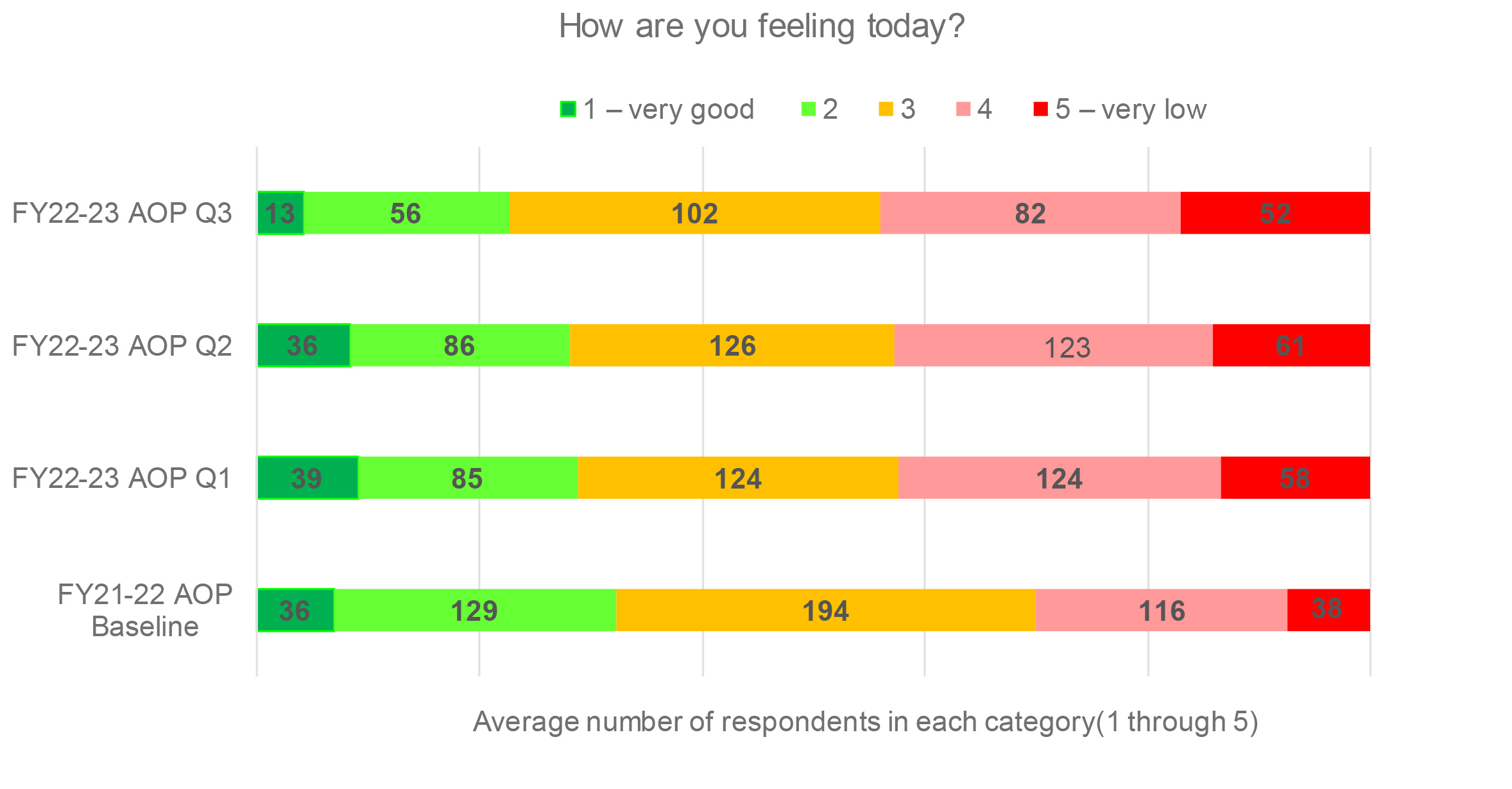 During Quarter 3, we conducted two wellbeing pulse surveys. The results for these surveys are shown in this table.