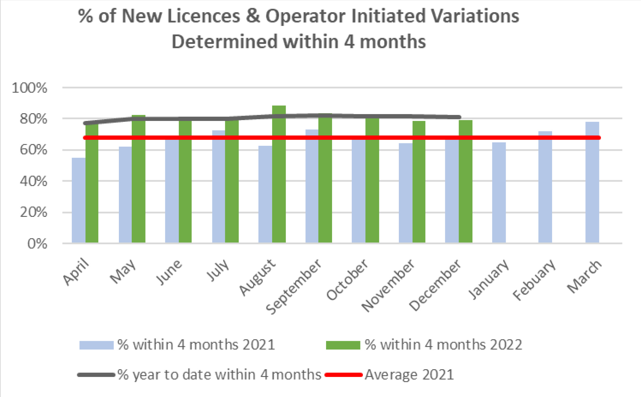 There has been a continuous improvement in the number of new licences and variations that have been determined compared to the average reported in 2021. This performance has been consistent since March 2022.