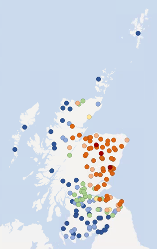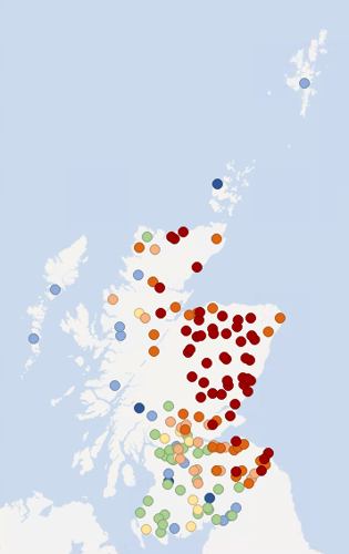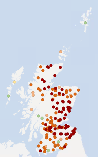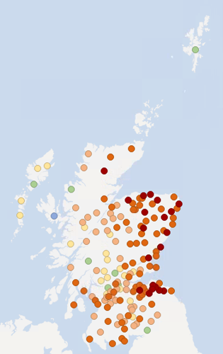 Despite recent rainfall the river flows remain very low across much of the east of Scotland. Moderate scarcity remains in the Spey, Deveron, Ythan, Don (Aberdeenshire), Dee (Aberdeen), Esk, Firth of Tay and Tyne (Lothian) river catchments. The Findhorn, Firth of Forth and Almond catchments remain at Alert.
