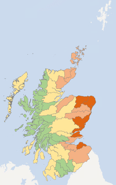 The River Helmsdale area has been raised to Significant Water Scarcity. The Wick, Spey, Deveron, Ythan, Don (Aberdeenshire), Dee (Aberdeen), Esk, Firth of Tay and Tyne (Lothian) river catchments remain at Moderate Water Scarcity. The Firth of Forth and Tweed have recovered to Alert. Further recovery means that many of the remaining areas are at Early Warning or Normal Conditions, with some catchments still at Alert.
