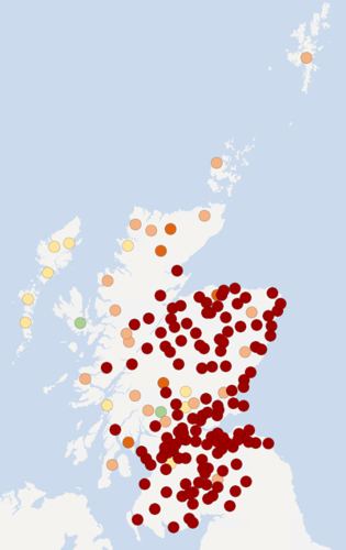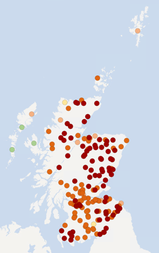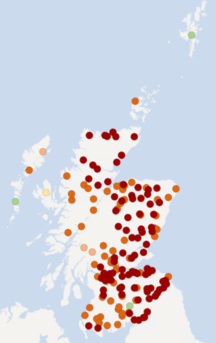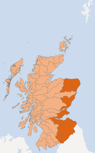 The river catchments of the Spey, Tay, Annan, Nith, Dee (Galloway) and Cree have been raised to Moderate scarcity. The Deveron, Ythan, Don (Aberdeenshire), Dee (Aberdeen), Esk, Firth of Tay, Firth of Forth, Almond, Tyne (Lothian), Tweed, and Esk (Dumfriesshire) remain at Moderate scarcity. Most of the rest of the country remains at Alert, except the Inner Hebrides and Outer Hebrides which are at Early Warning.