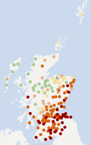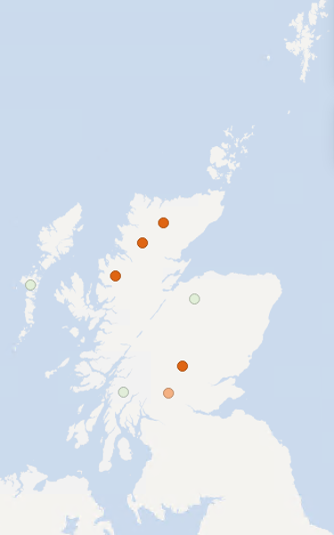 The maps below show recent groundwater and loch level compared to the long-term record at each individual station. Level is reported as high or low compared to the typical (‘normal’) level range for the time of year.